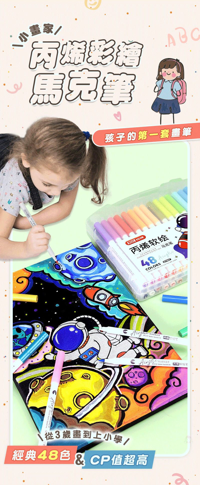 12分鐘前丙烯彩繪馬克筆 超強覆蓋力,萬物材質皆可畫,專為兒童研發,輕鬆擦拭不卡色 - 【一套】丙烯彩繪馬克筆 (48色)NT$580