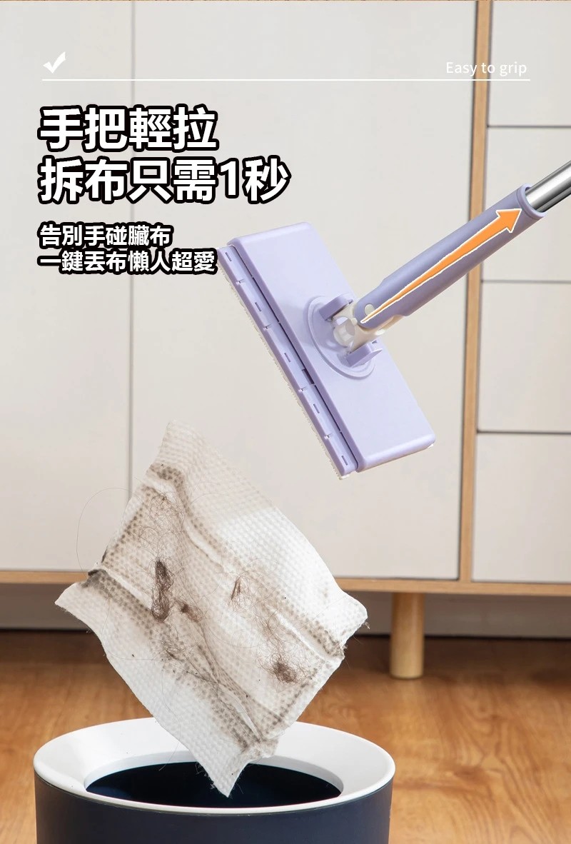 5分鐘前免手洗懒人伸縮拖把,新升級設計,不在擔心拖把不好弄,新升級長度設計,同時不沾手放人工擰拖把,使打掃變得簡單 - 【今日限定 買二送二 4把+ 拖布*4包 】-NT$1299